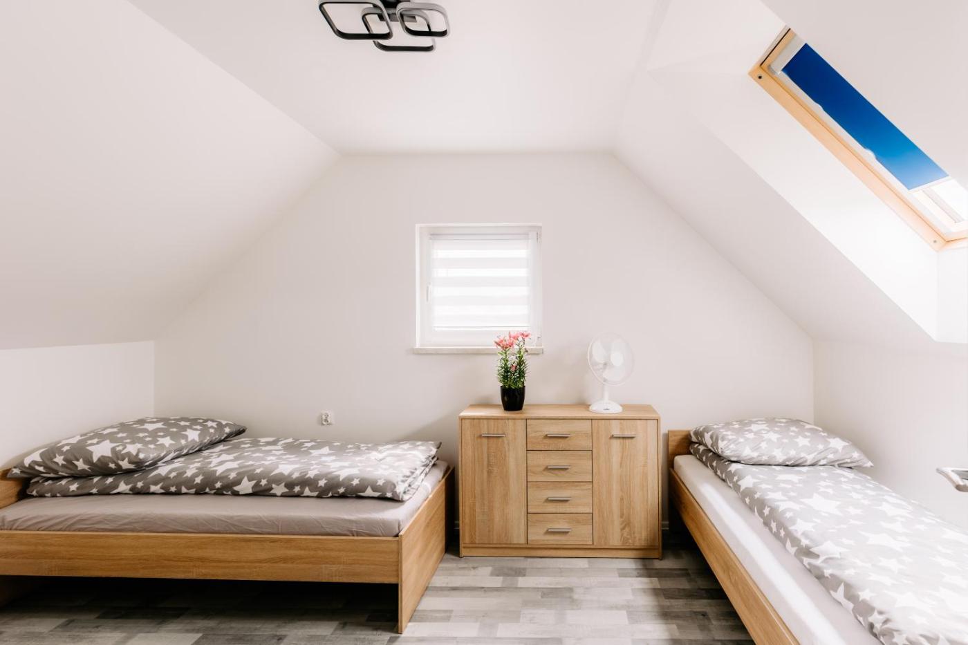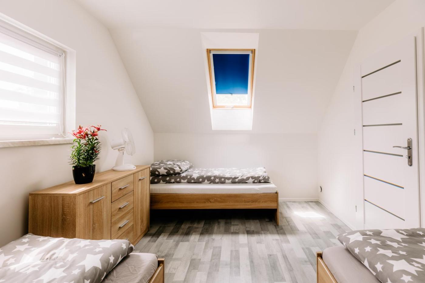 Dom z 2 sypialniami. The fireplace is the standout feature of this holiday home. Guests will find a stovetop, a refrigerator, a dishwasher and an oven in the fully equipped kitchen. The holiday home also comes with a barbecue. Boasting a terrace with garden views, this holiday home also features a washing machine and a flat-screen TV. The unit has 7 beds. Dom wakacyjny - 6 osobowy. Powierzchnia pokoju ok.: 70 mkw.